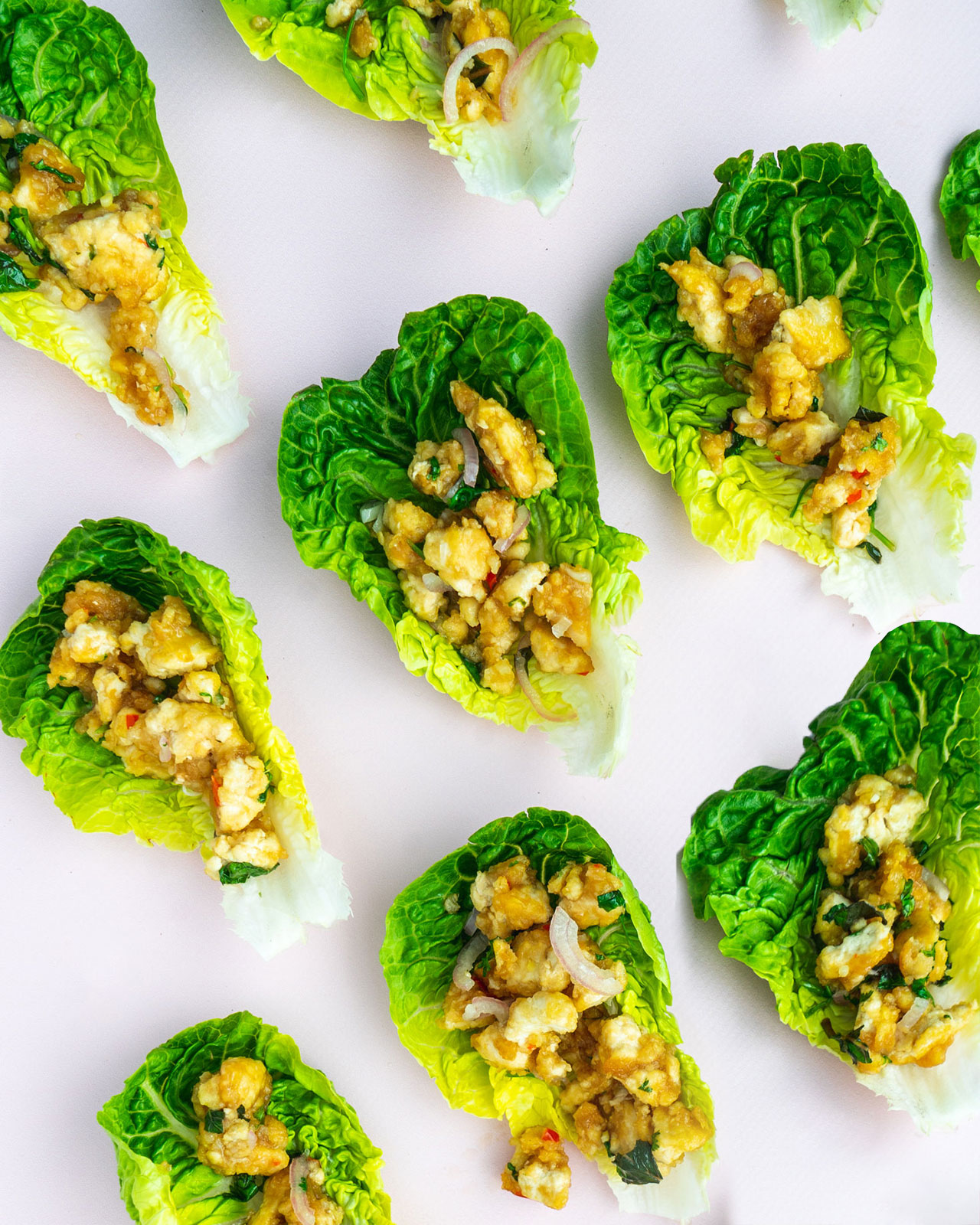 I used to make these lettuce wraps with chicken mince because that’s what the recipe told me to. But I barely eat minced meat anymore, since processed meat is so easy to replace.